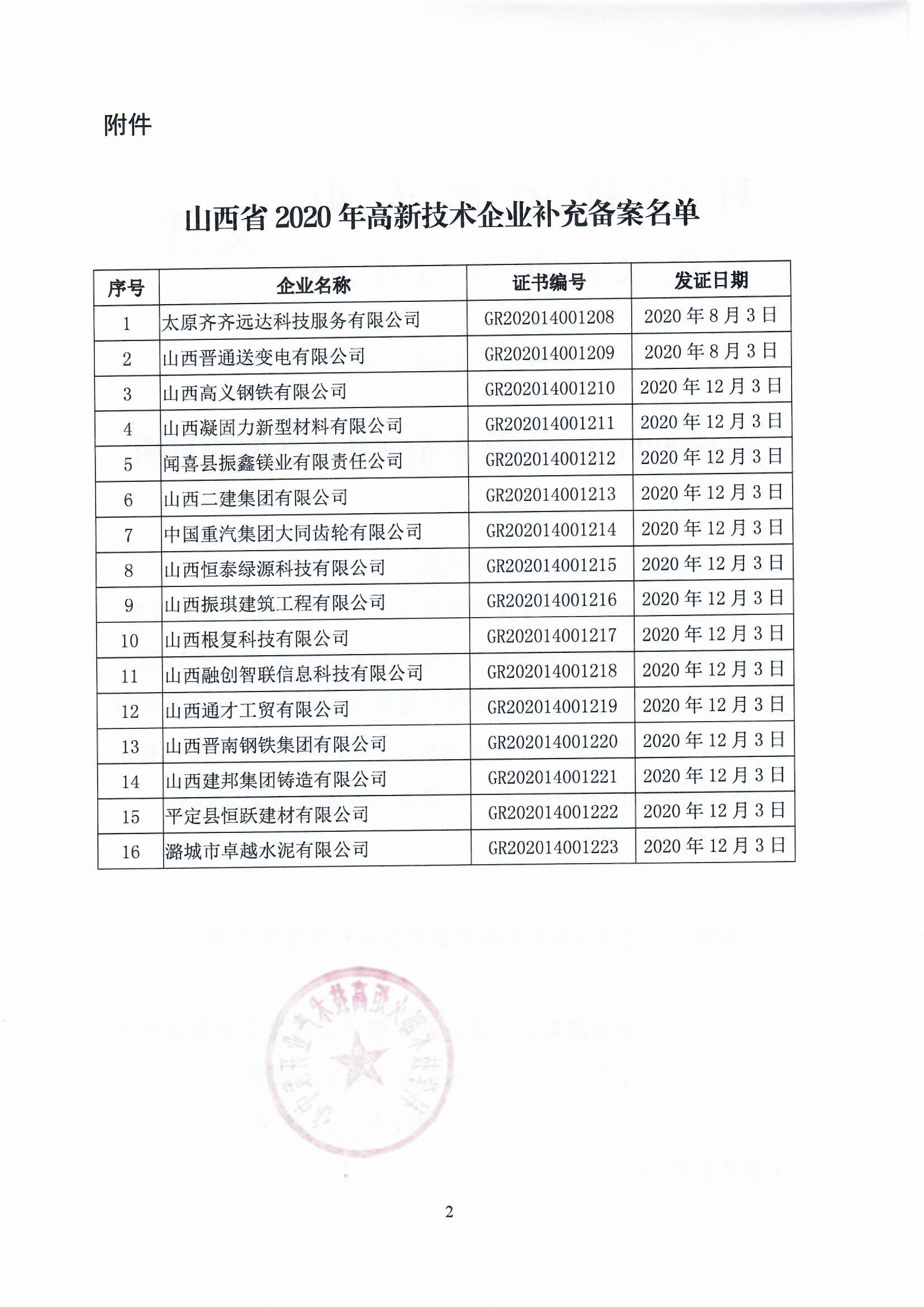 2021年3月26日,全國高新技術(shù)企業(yè)認(rèn)定管理工作領(lǐng)導(dǎo)小組辦公室將備案抽查通過的太原齊齊遠(yuǎn)達(dá)科技服務(wù)有限公司等16家企業(yè)予以高新技術(shù)企業(yè)備案,具體如下: